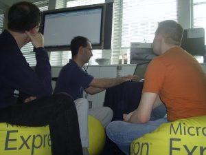 Scott Guthrie entertains more than just Phil and Dave during an impromptu coding and demo session in the Community Lounge – this is what community is all about, you should have been there!
